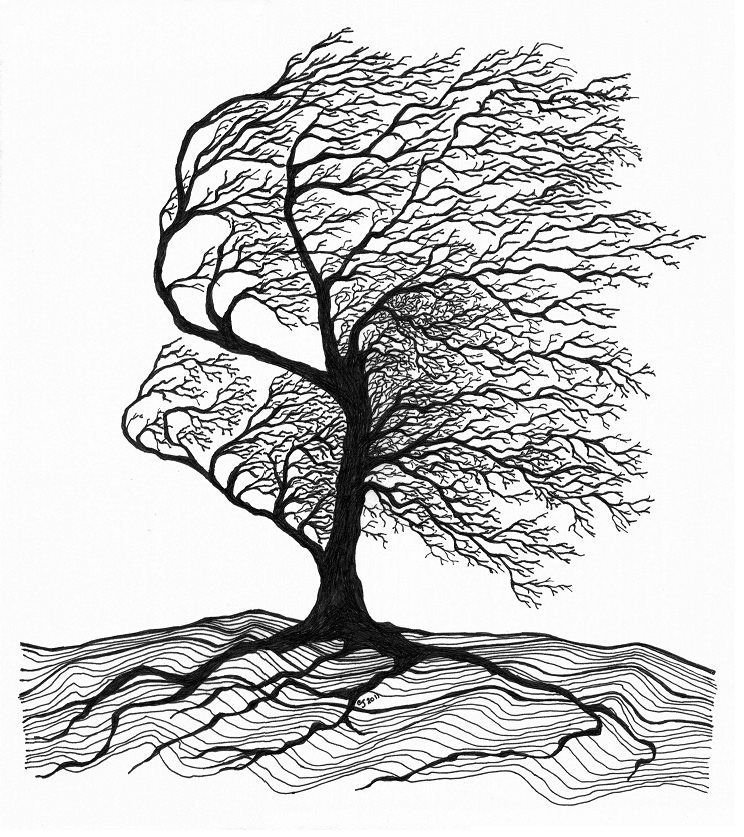 Дерево штрихами