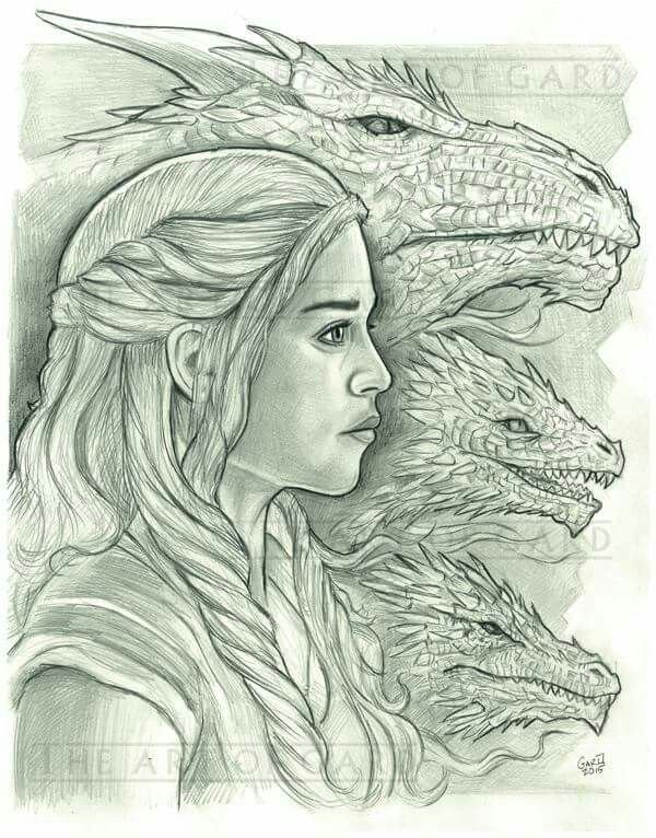 Девушка и дракон карандашом