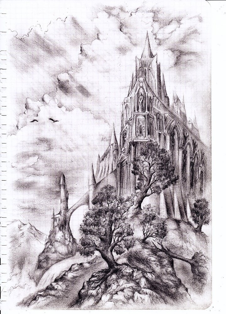 ![Фантастический пейзаж карандашом]()