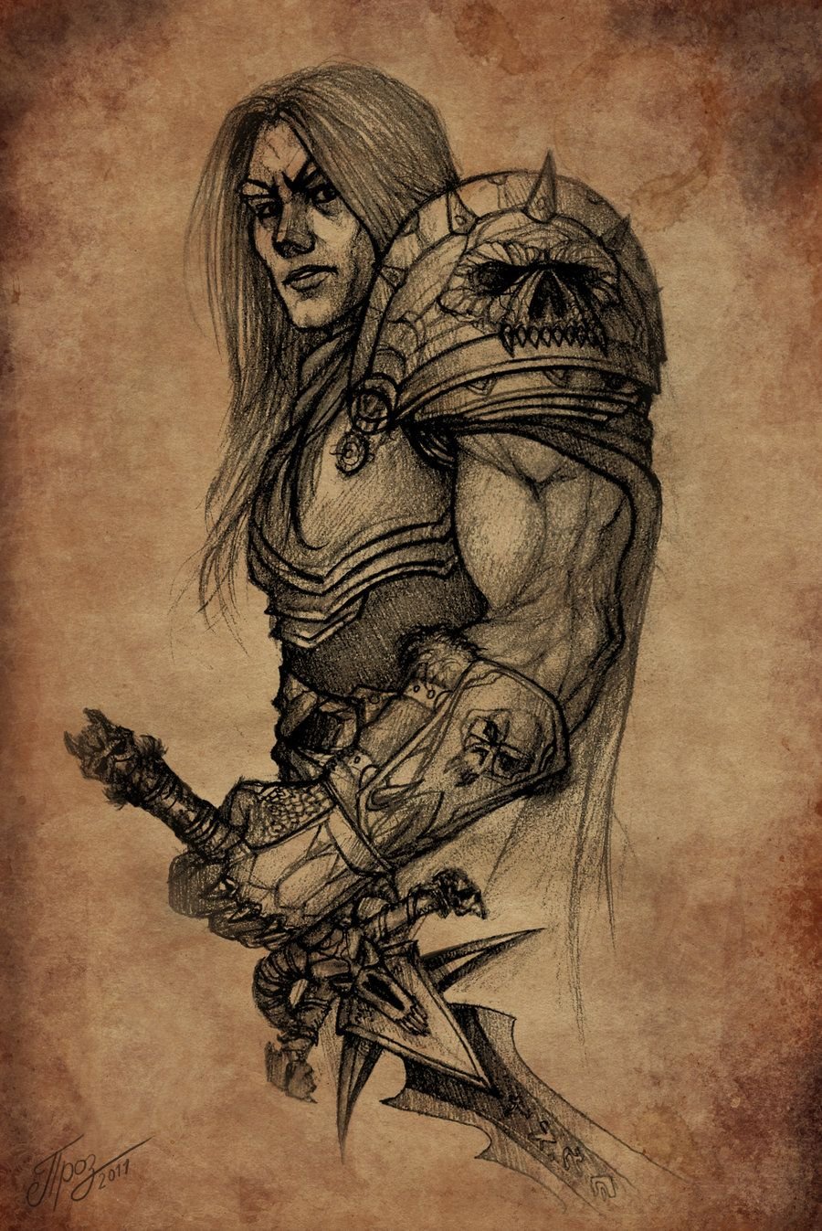![Девушки воительницы карандашом]()