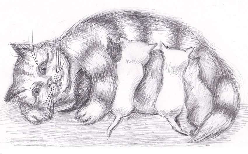 ![Кошка карандашом]()
