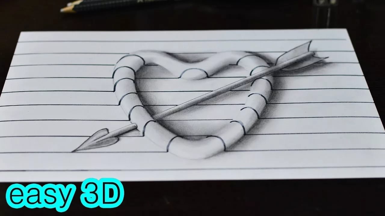 ![3д сердце рисунок карандашом]()