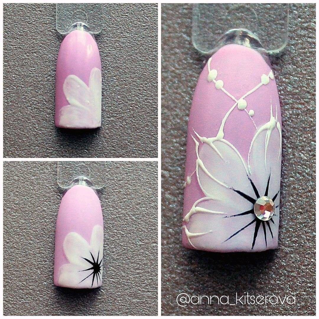 ![Цветы маникюр пошагово]()