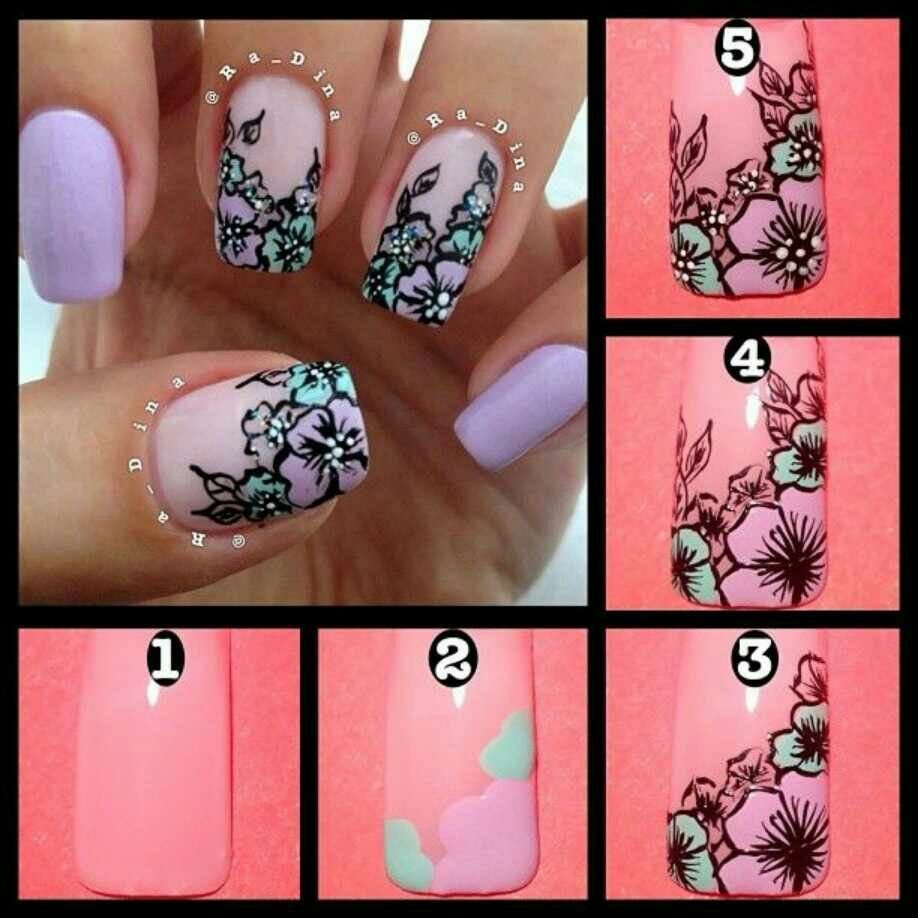 ![Пошаговый маникюр с цветами]()