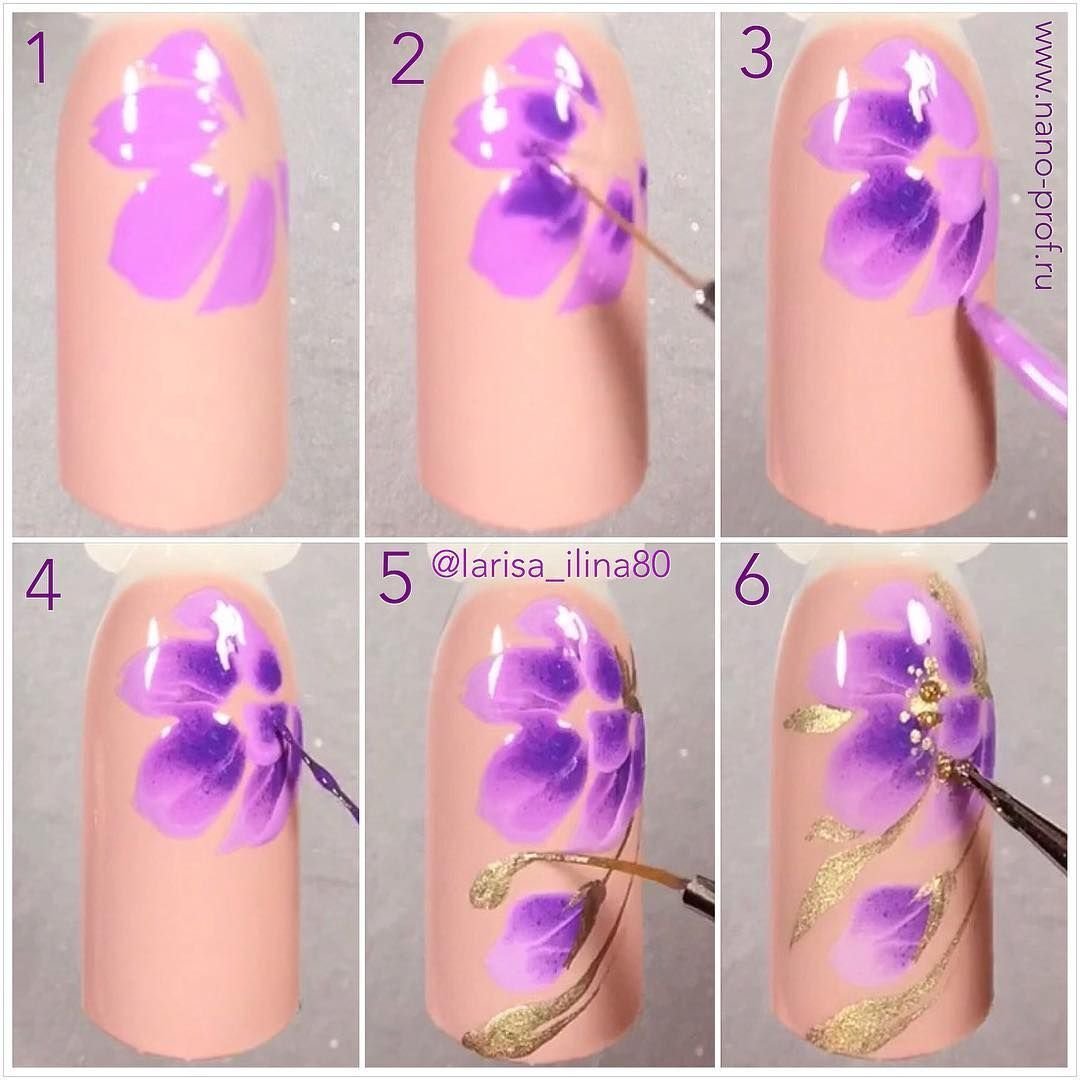 ![Рисование цветов на ногтях пошагово]()