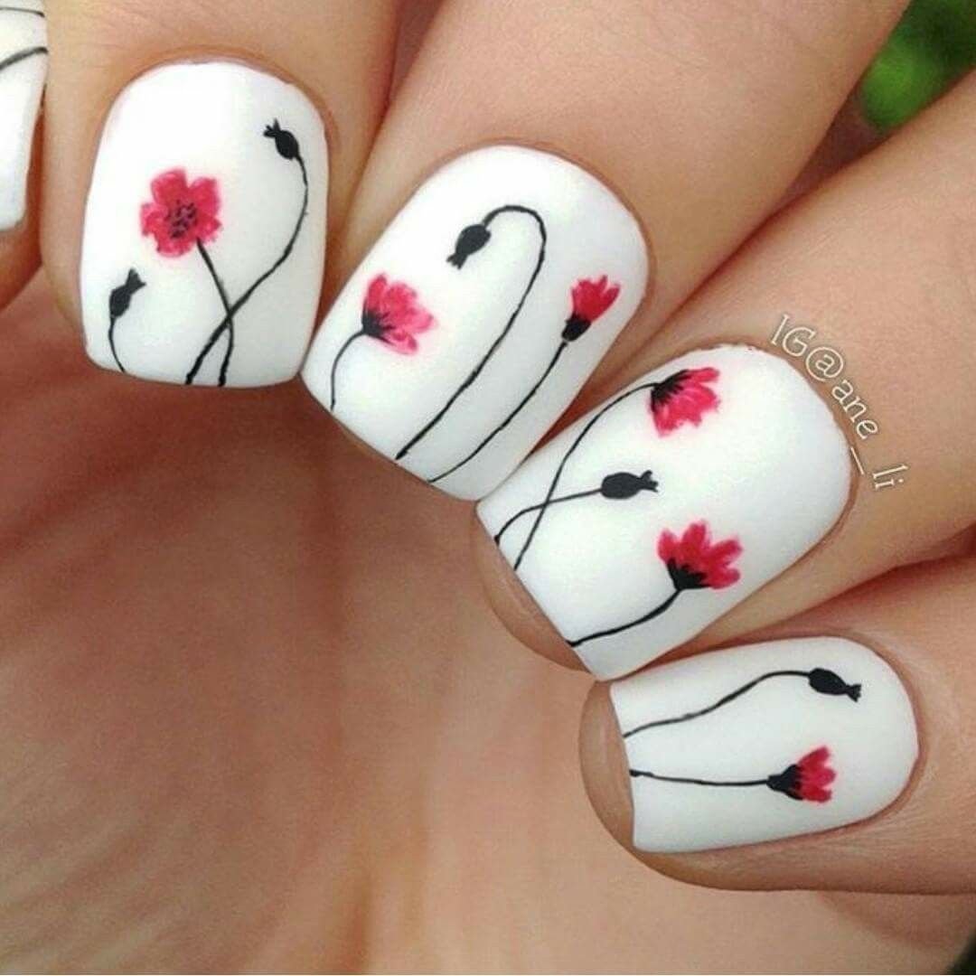 ![Несложные цветы на ногтях]()