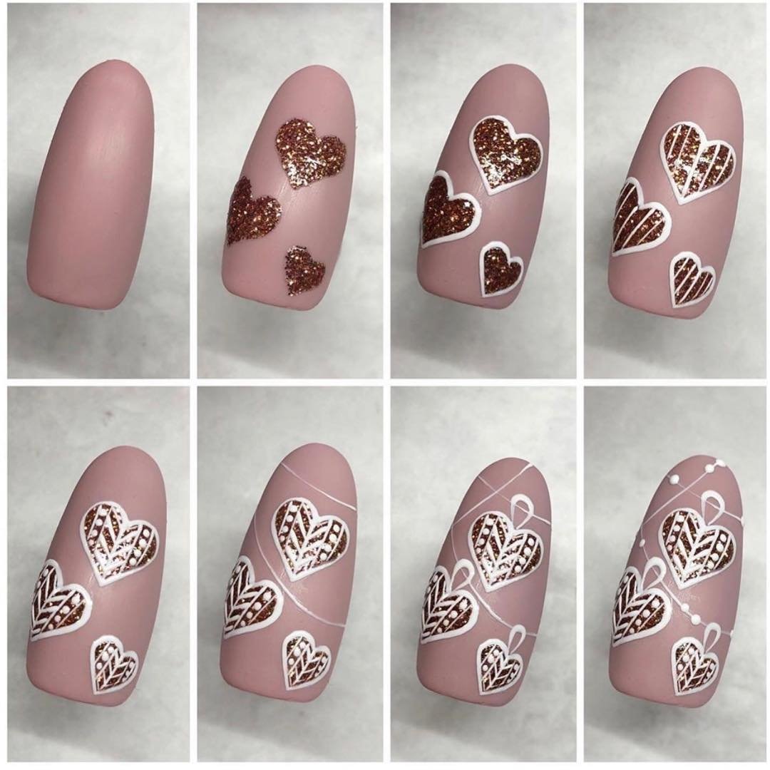 ![Пошаговое рисование на ногтях]()