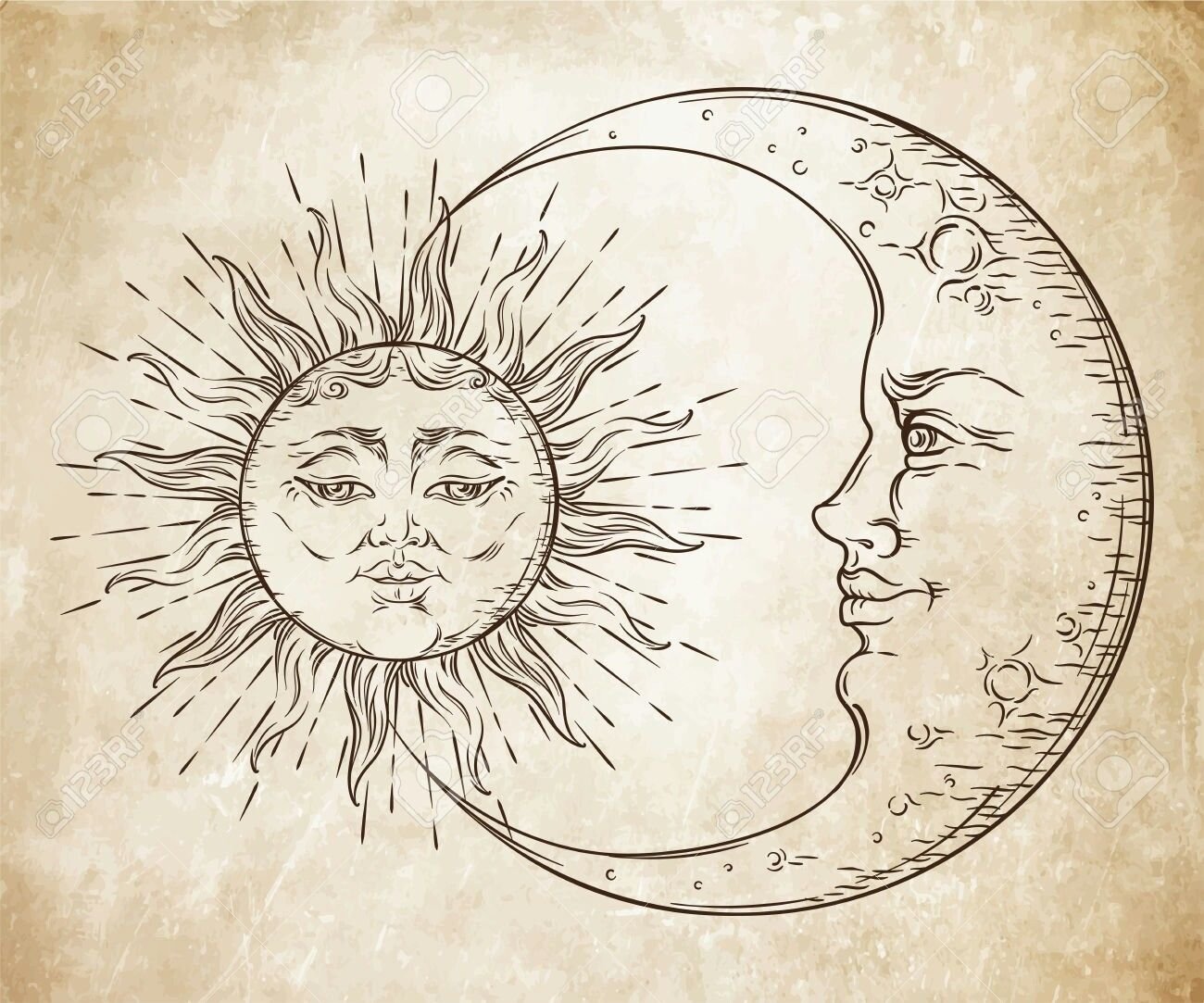 ![Солнце и Луна рисунок карандашом для срисовки]()