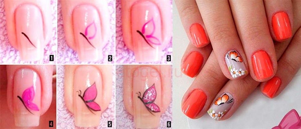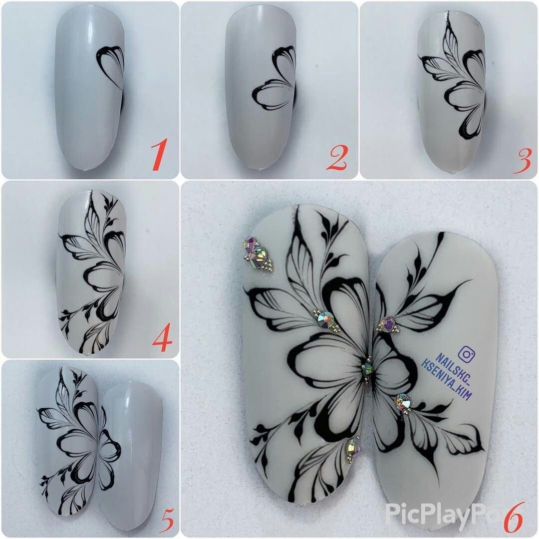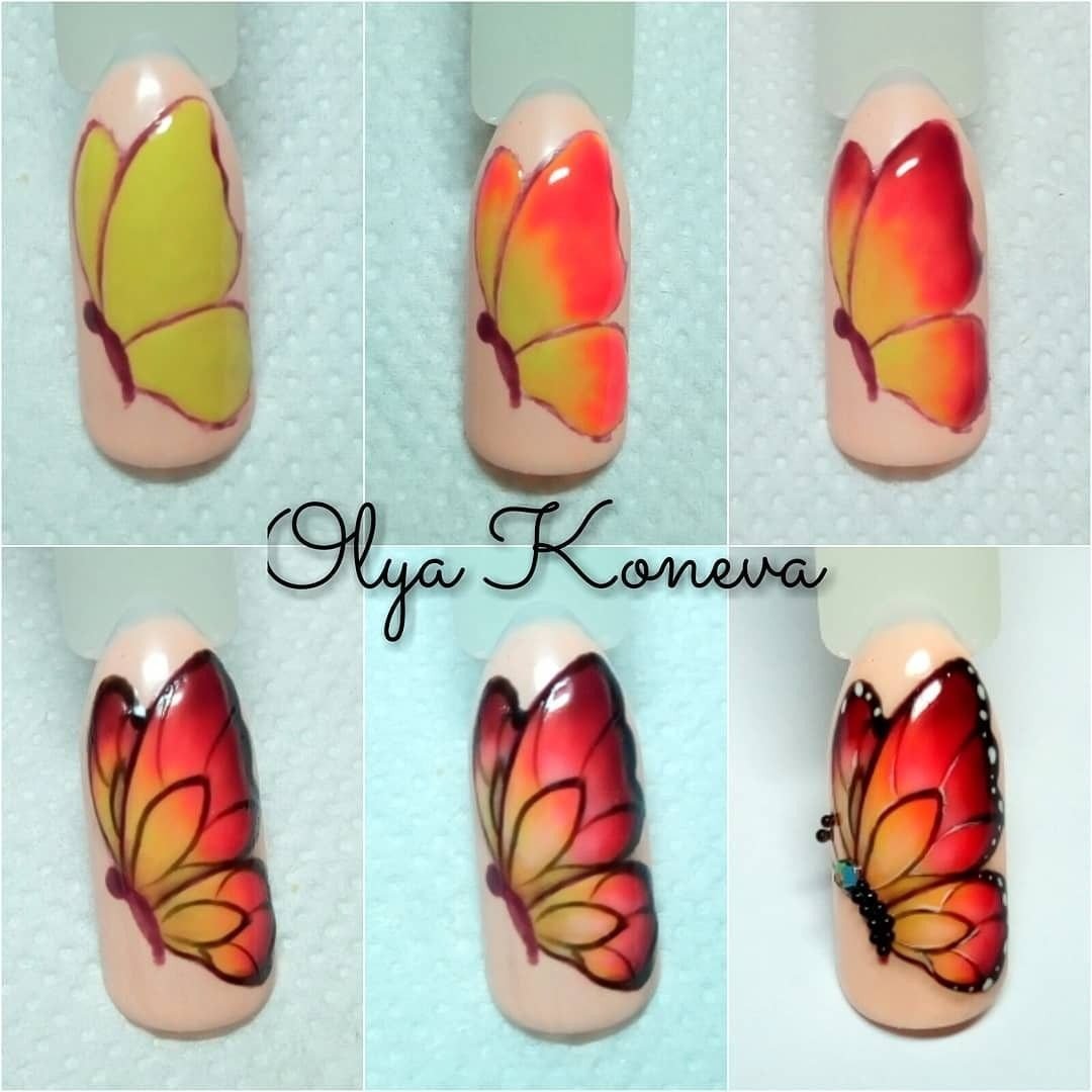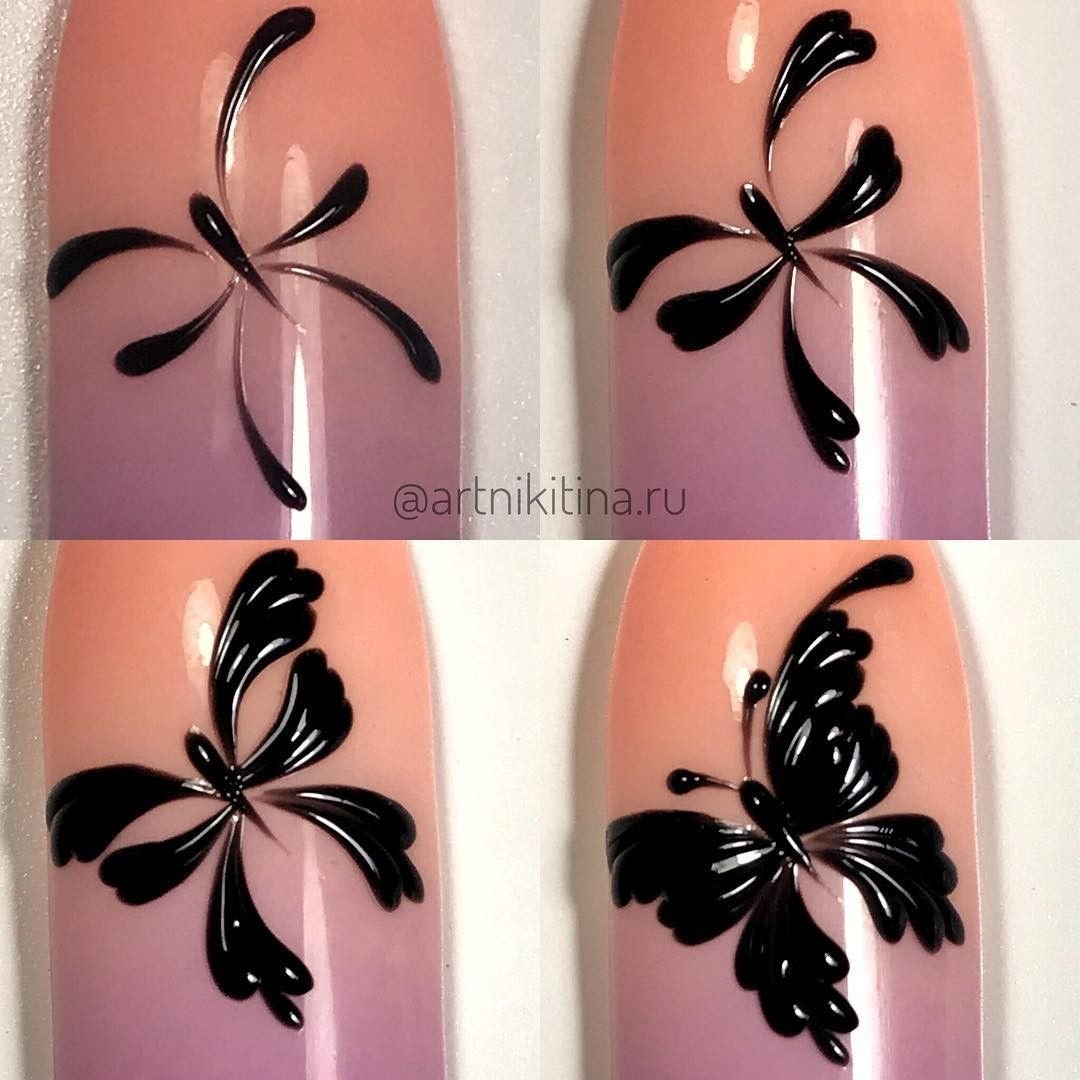 Бабочка на ногтях пошагово для начинающих