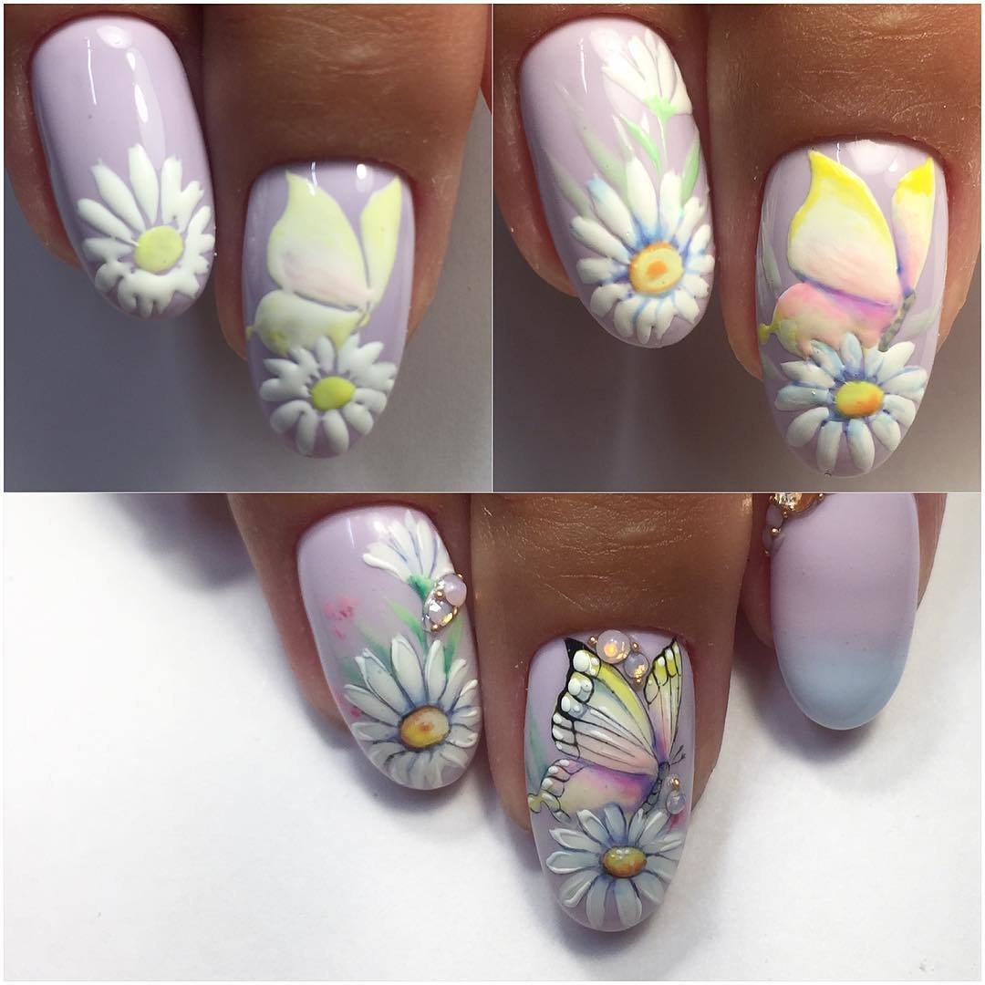 Маникюр со цветочками и с бабочками