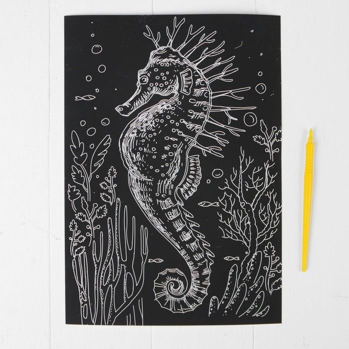 ![Граттаж морской конек]()