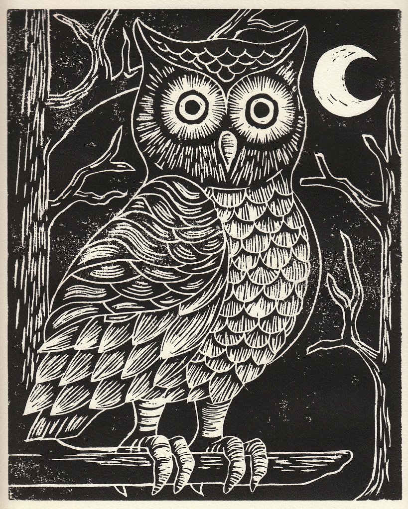 Томас Бьюик Сова Ксилография