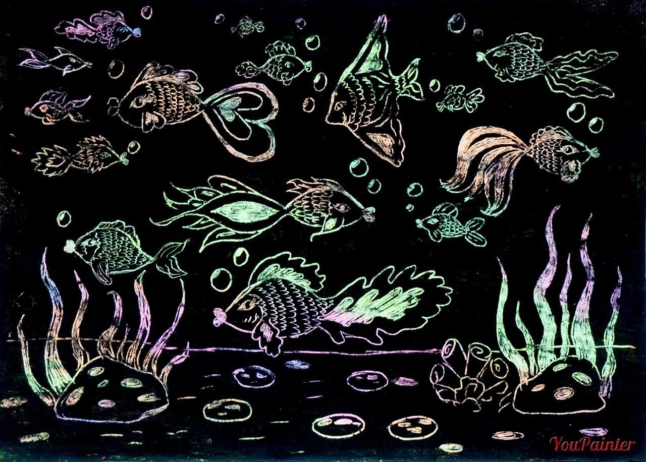 Рыбки в технике граттаж