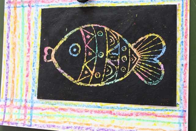 ![Рыбки в технике граттаж]()