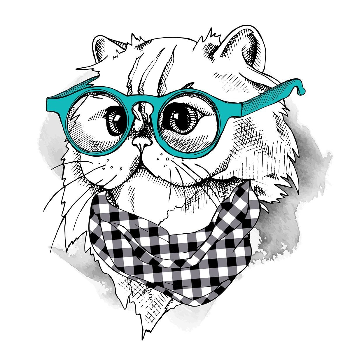 Рисованный кот в очках