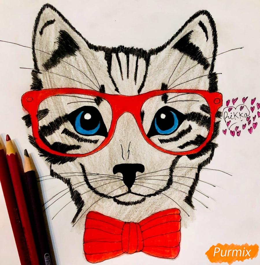 Кот в очках рисунок карандашом