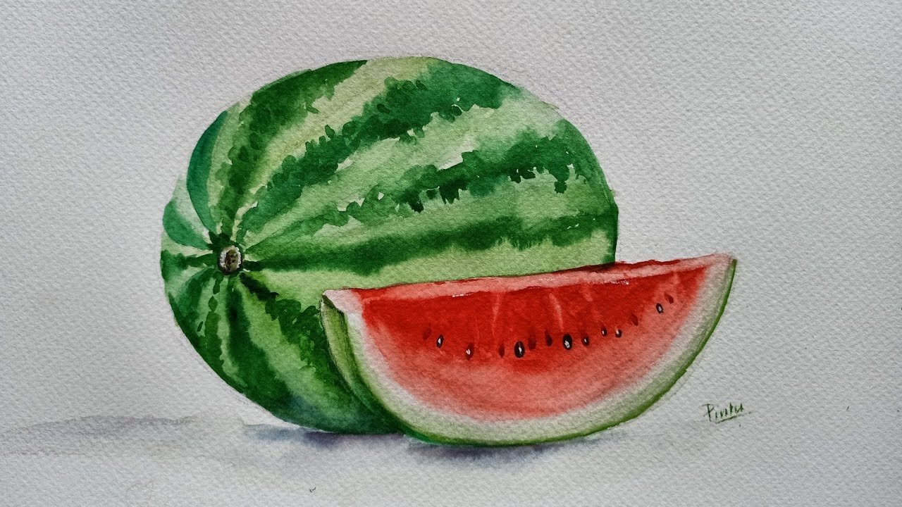![Арбуз красками]()