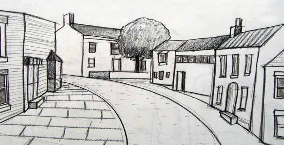 Линейная перспектива улицы карандашом