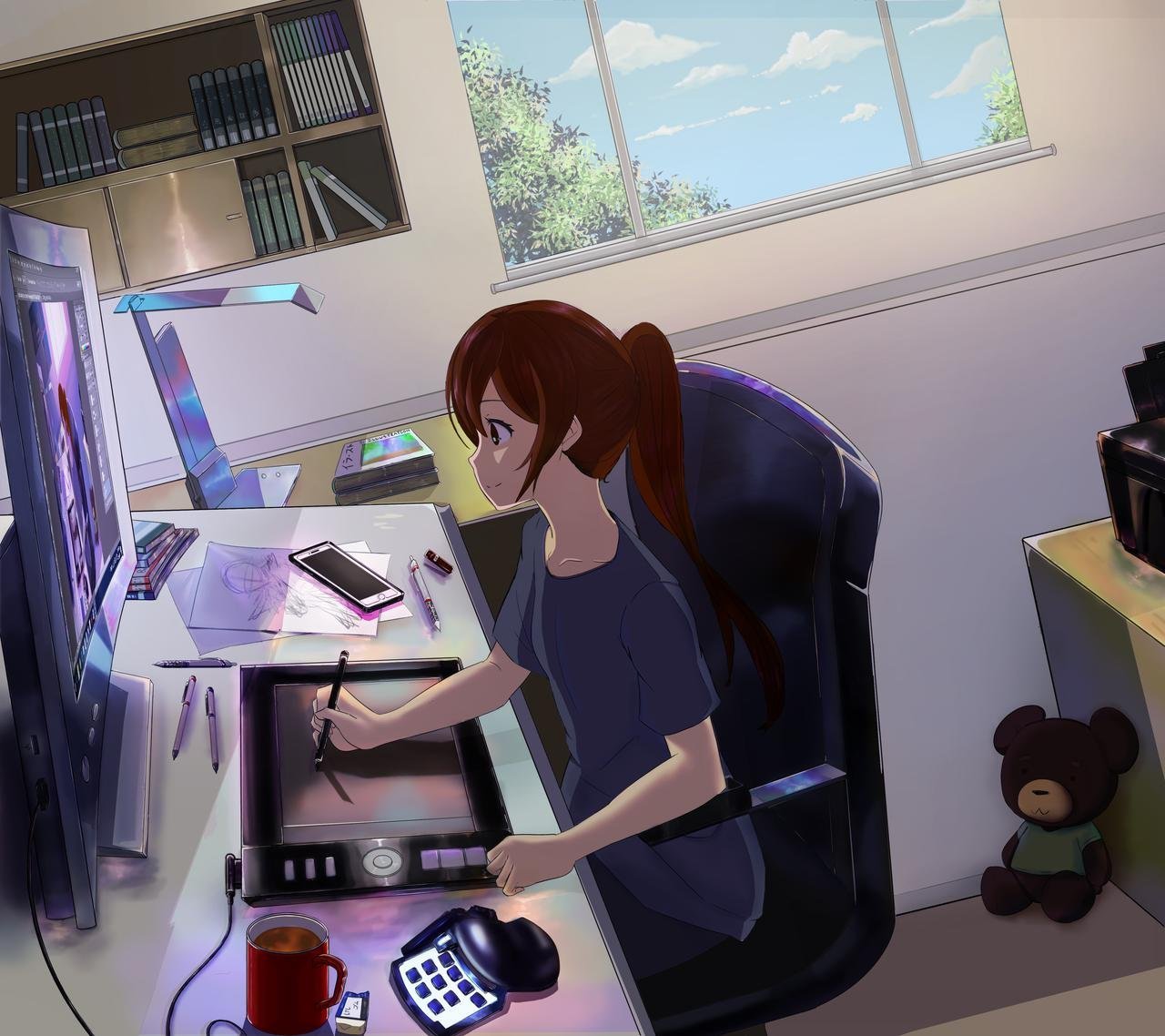 Простой рисунок девушка за компьютером - это иллюстрация, которая показывает молодую женщину сидящую за компьютерным столом. Она может быть изображена в различных позах, например, в концентрации смотреть на экран, с пустым выражением лица или улыбаясь. Рисунок может передавать современную атмосферу и демонстрировать активное использование технологий в повседневной жизни. Этот простой иллюстративный рисунок подходит для различных проектов, связанных с информационными технологиями, социальными сетями, образованием и другими сферами, где требуется изображение человека за компьютером.