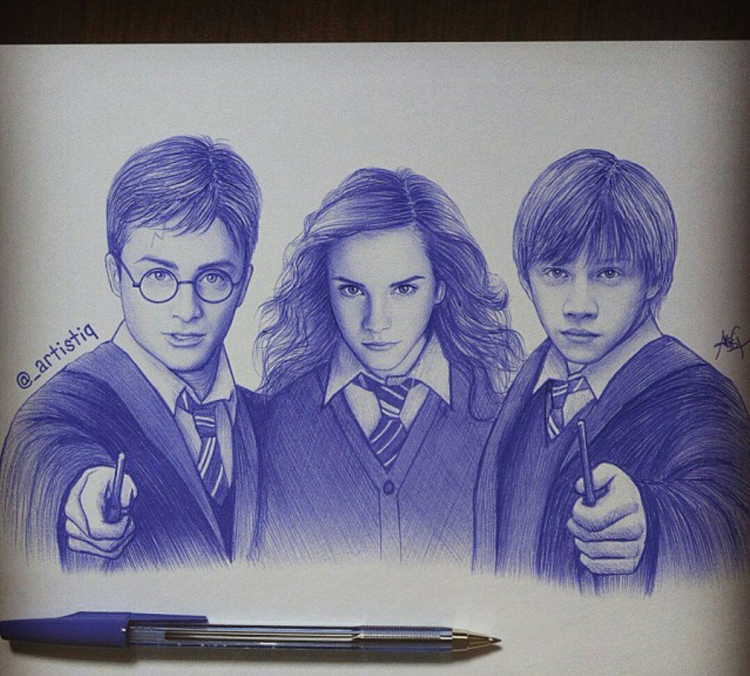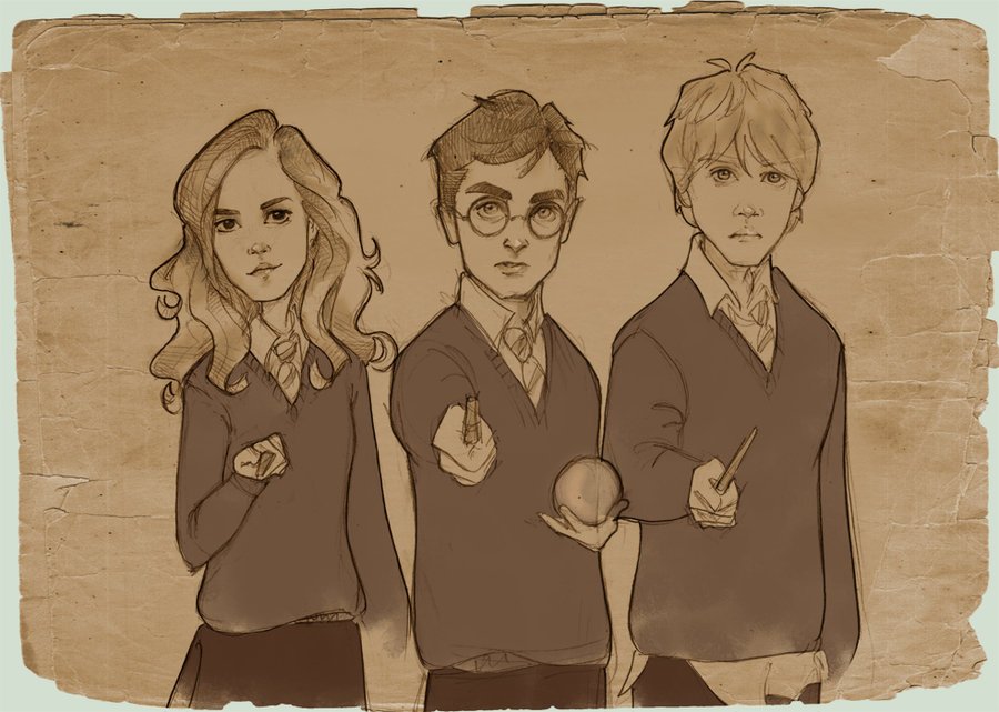 Срисовки Гарри Поттера Рона и Гермионы