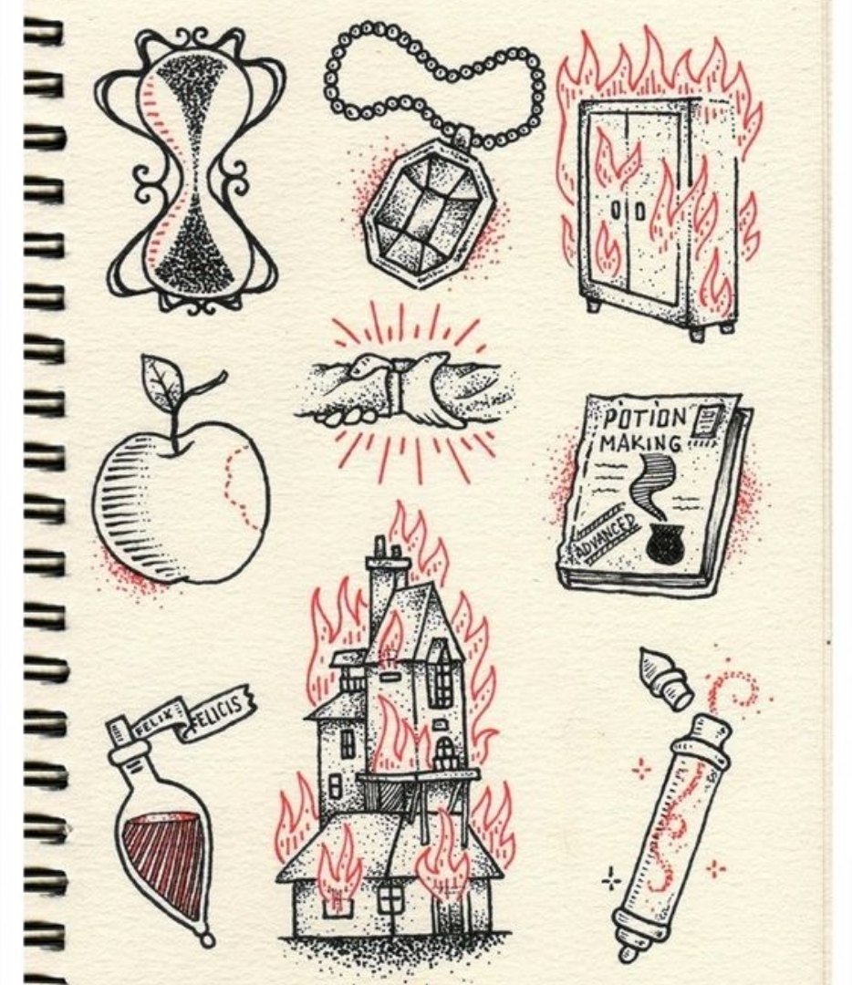 ![Тату Гарри Поттер эскизы]()