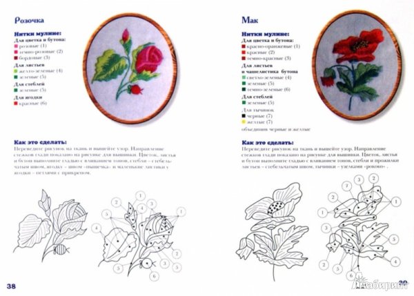 ![Схемы вышивки цветов гладью для начинающих пошагово]()