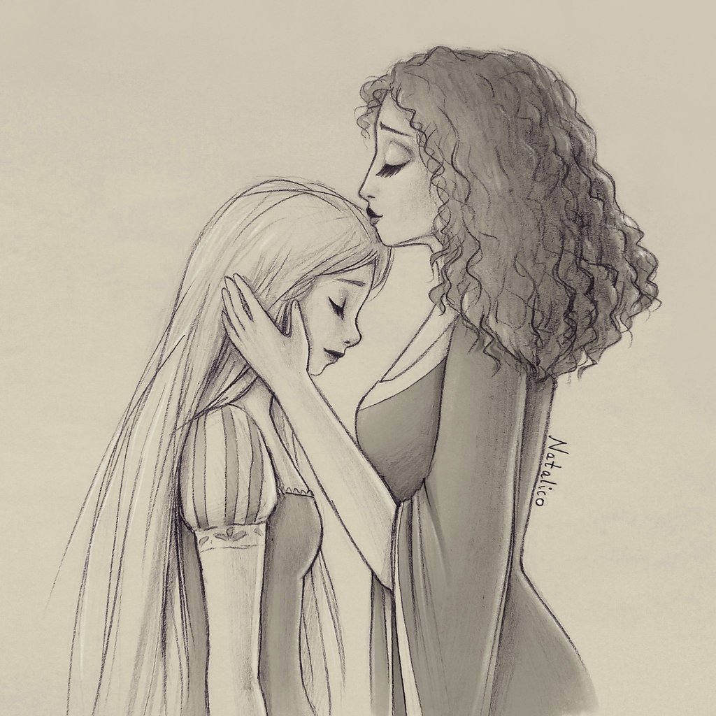 ![Мать и дочь рисунок карандашом]()