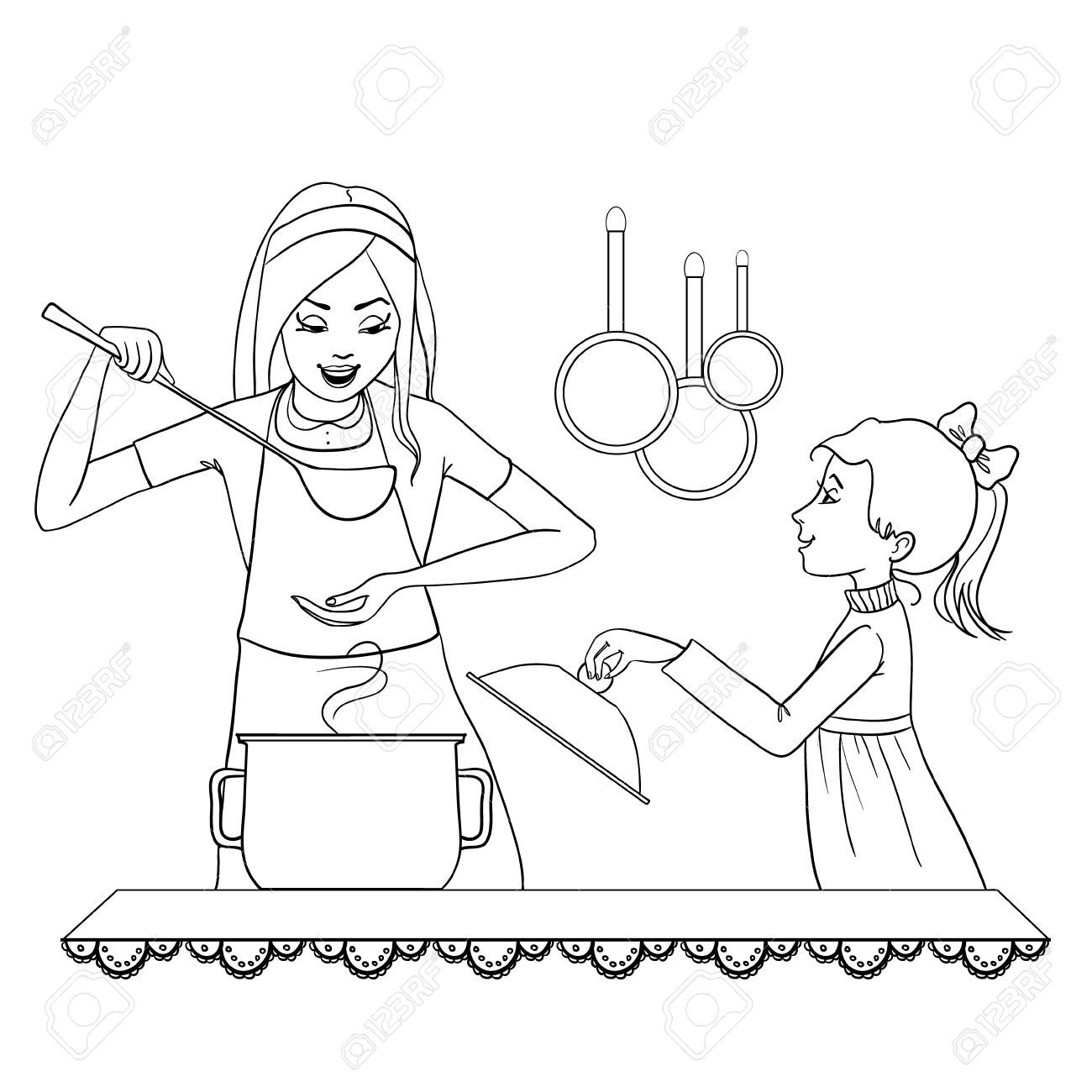 ![Раскраска мама домохозяйка для детей]()