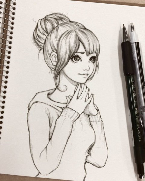 ![Рисунки девушек карандашом для скетчбука]()