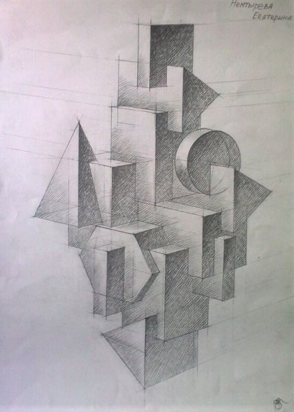 ![Объемно пространственная композиция из геометрических тел]()