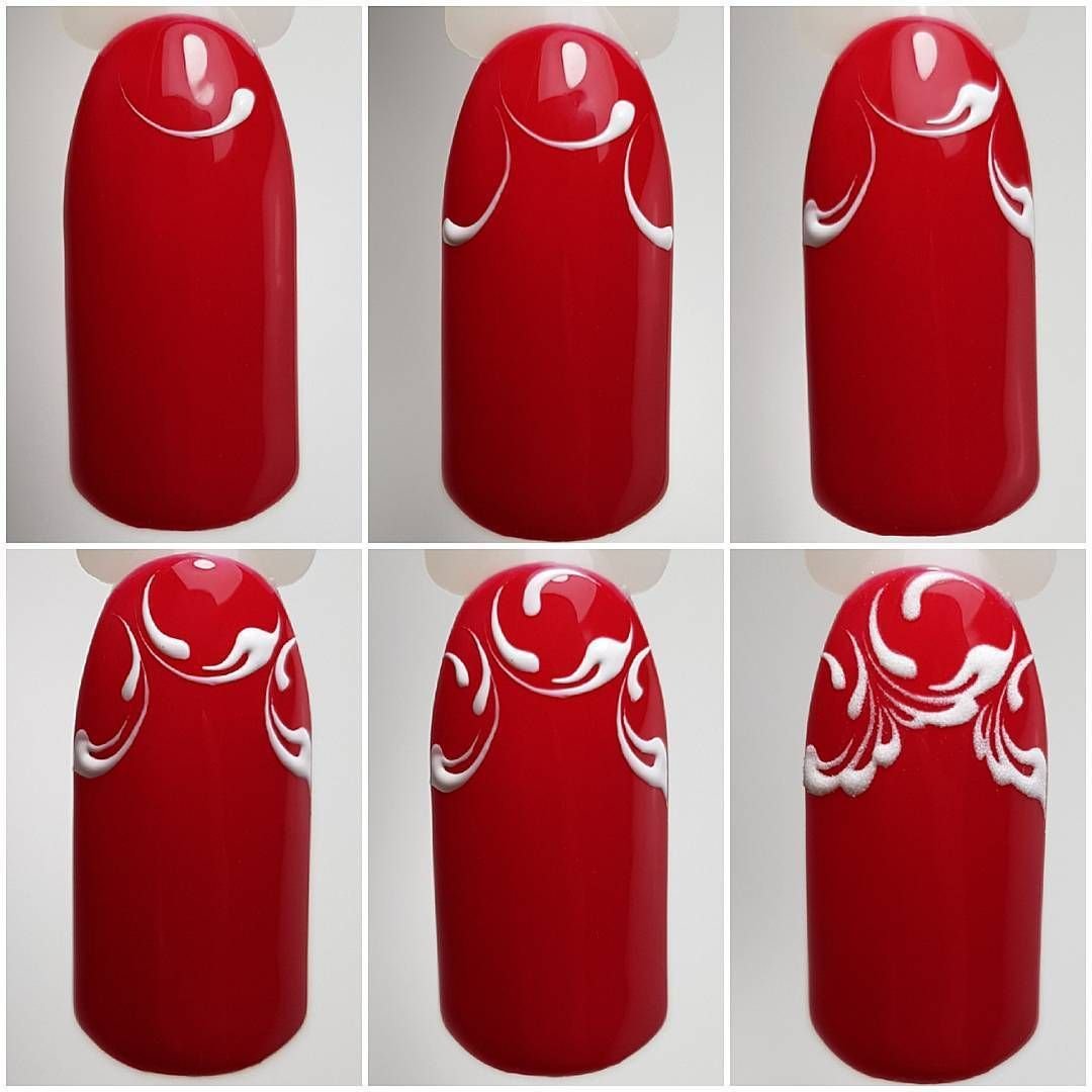 Маникюр красный с белым для начинающих