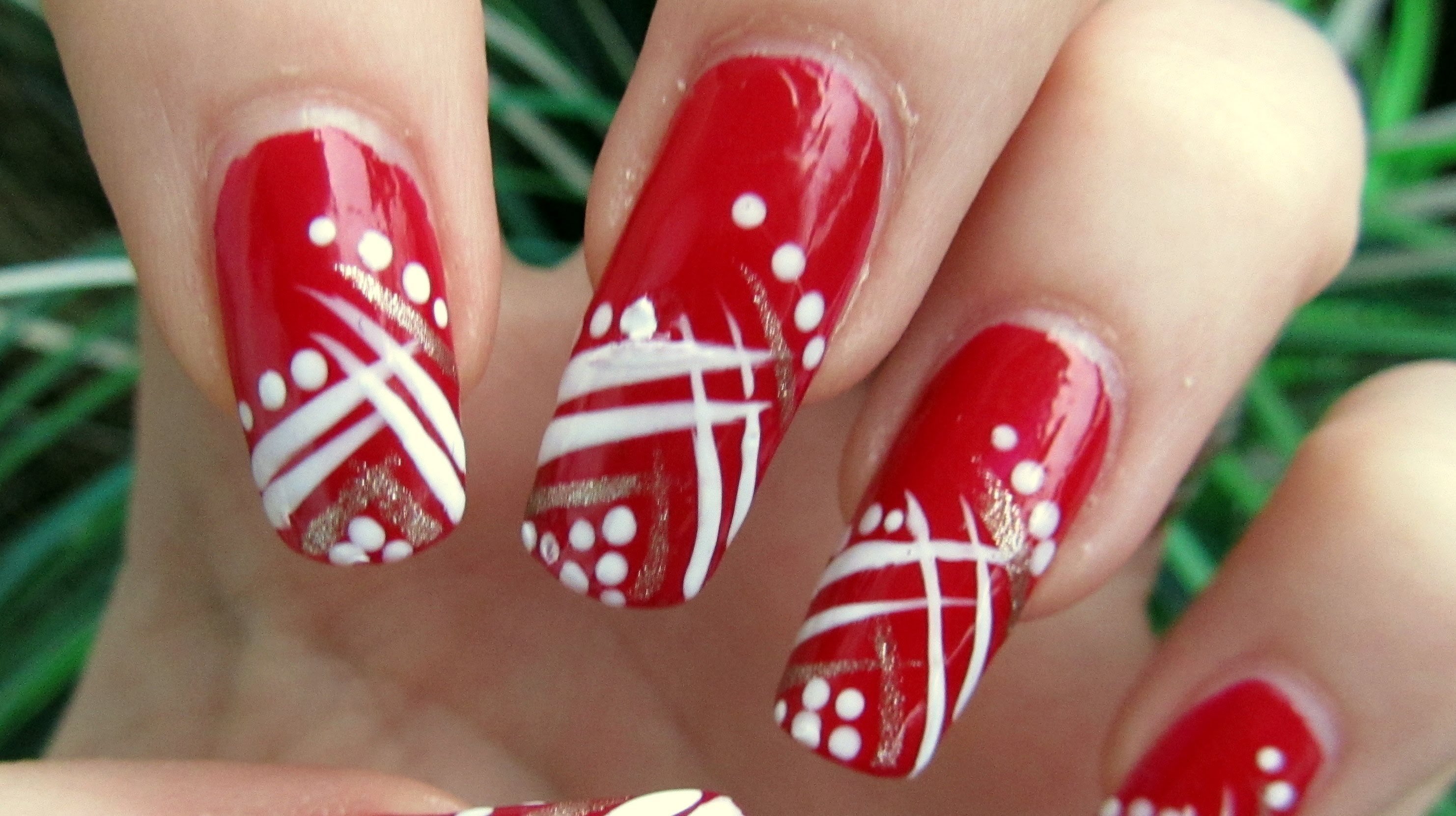 Маникюр красный с белым