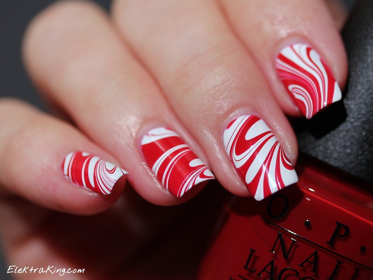 Новогодний маникюр с бело красными полосками