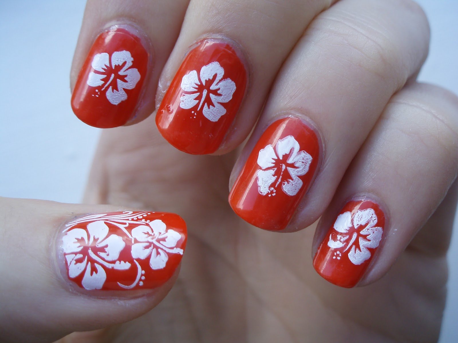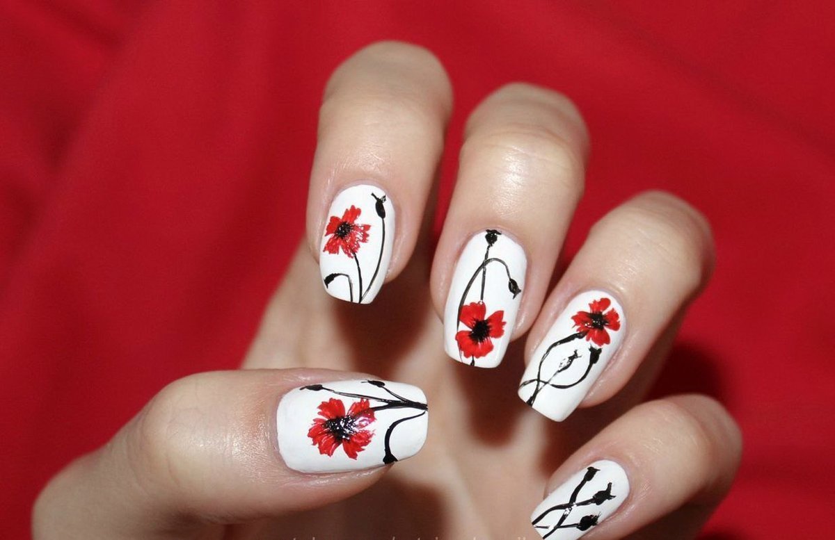 Красные ногти с цветочками