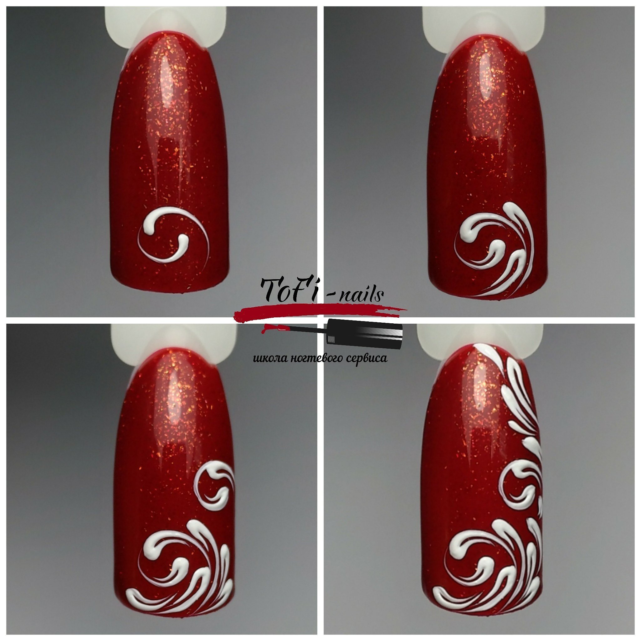 ![Красный маникюр с вензелями]()