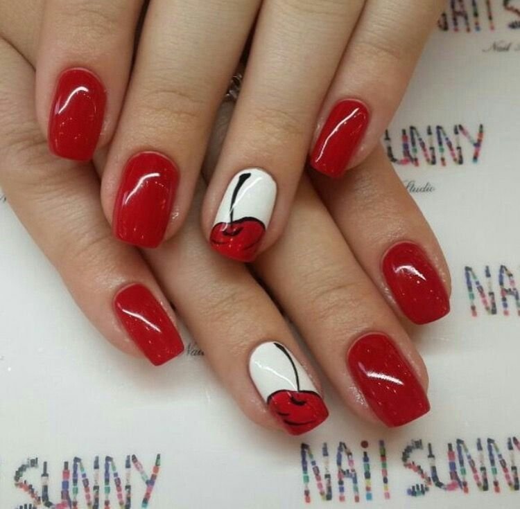 ![Красные ногти с вишней]()