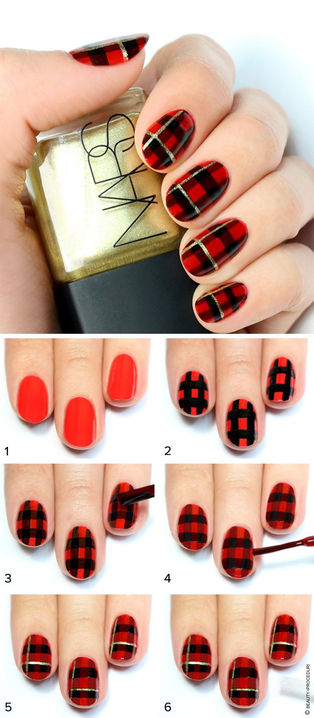 ![Маникюр красная клетка]()