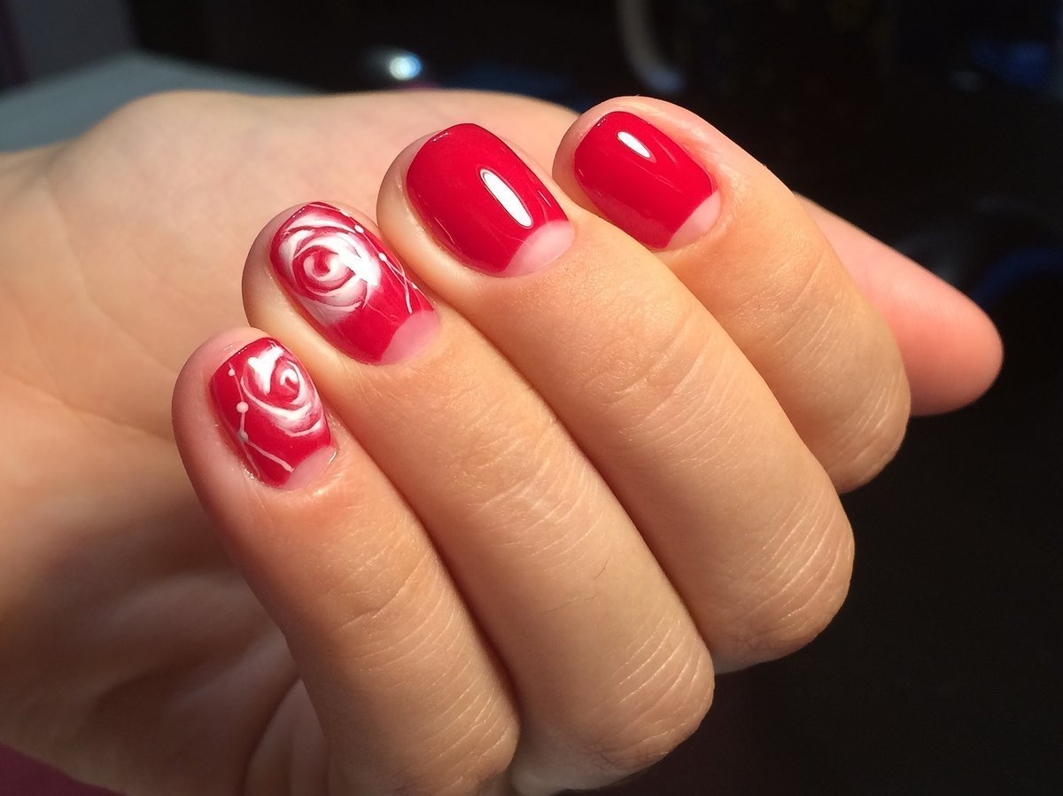 Красный маникюр с розами