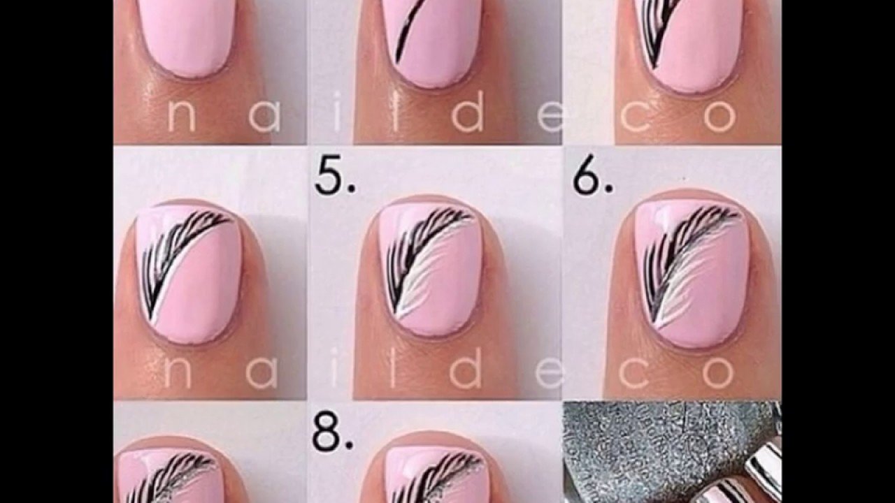 Перья на ногтях пошагово для начинающих