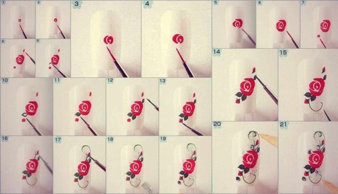 Роза на ногтях пошагово для начинающих