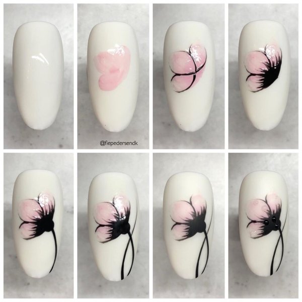 ![Пошаговые рисунки на ногтях]()
