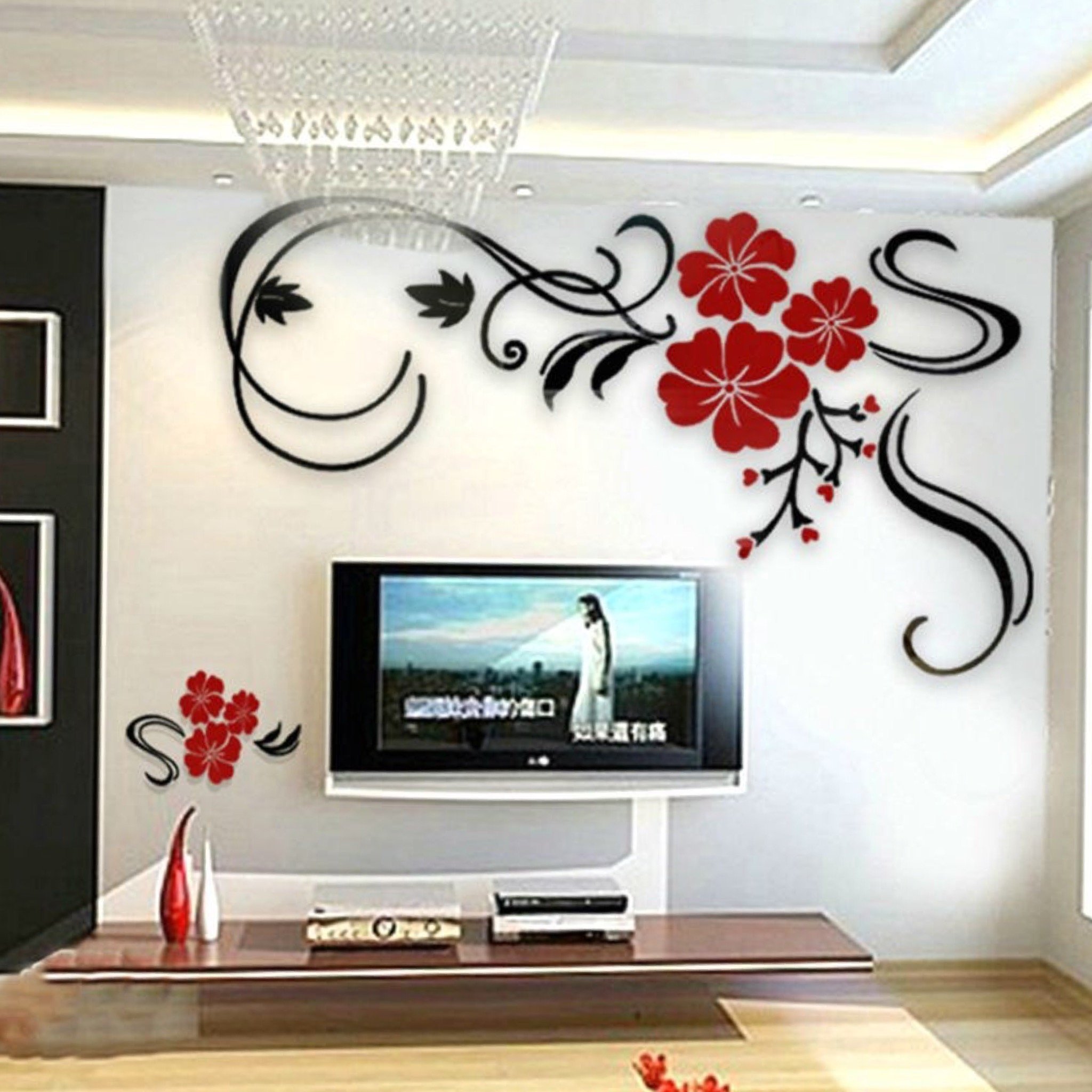 ![Рисунок цветов на стене в комнате]()