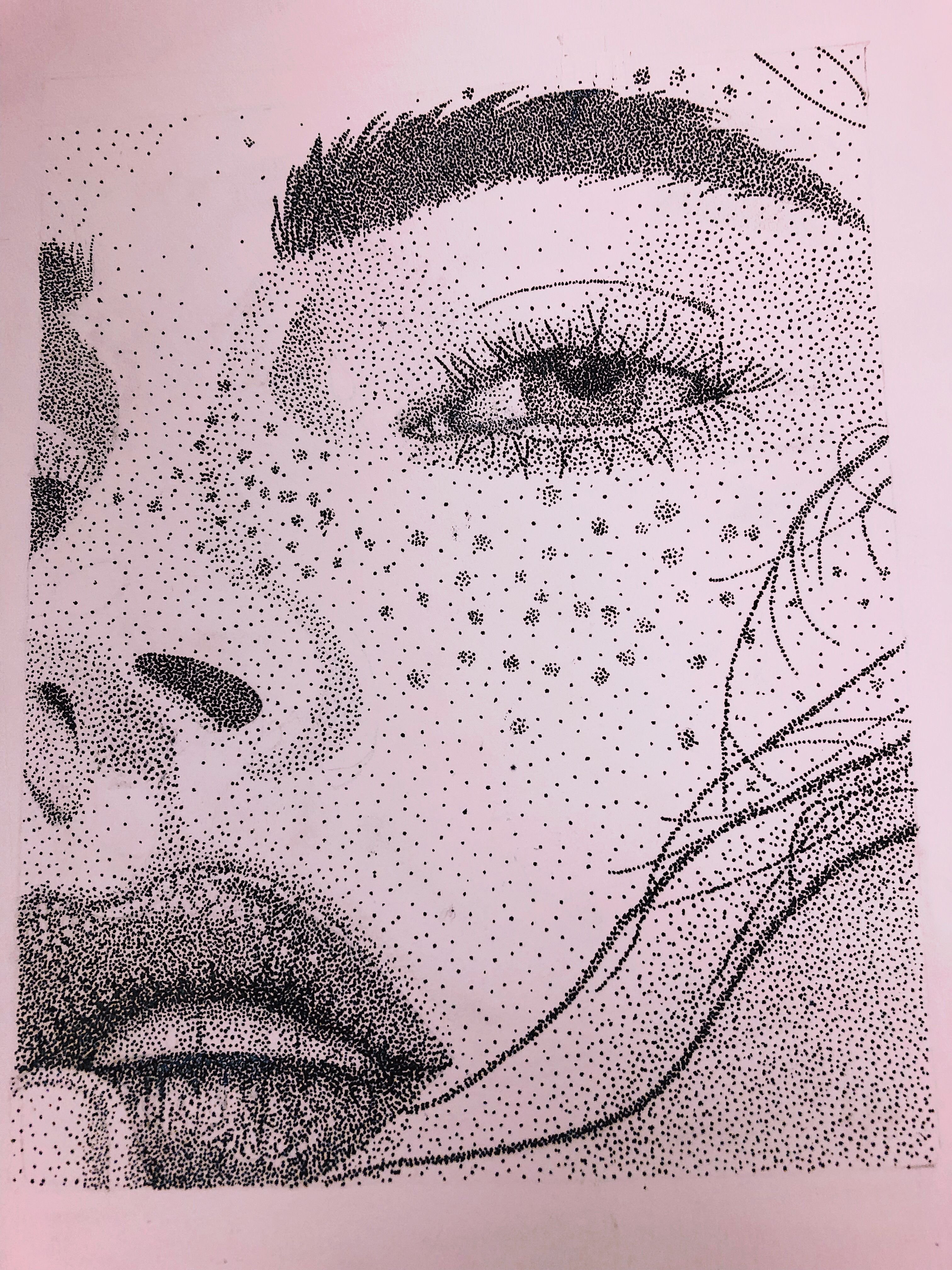 ![Пуантилизм техника рисования для детей Золотая рыбка]()
