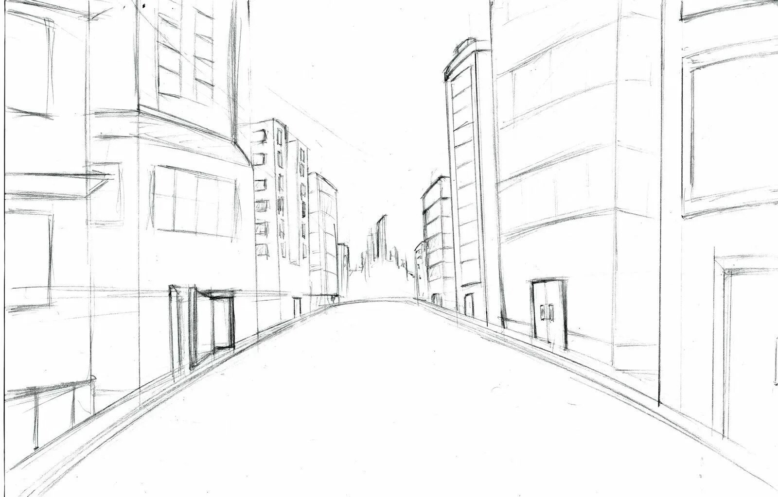 ![Зарисовка города линейная перспектива]()