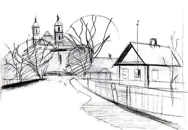 ![Рисунок улицы карандашом]()