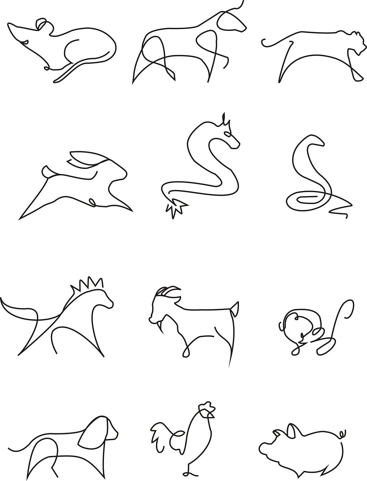 ![Животные одной линией]()