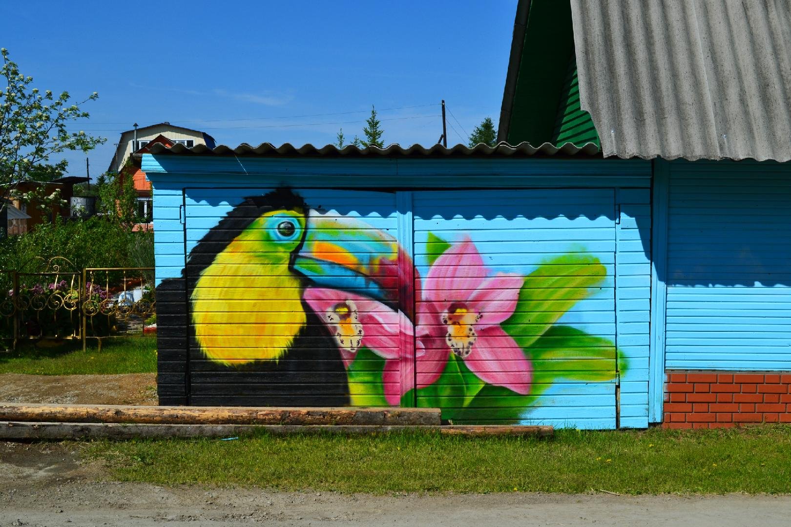 ![Роспись на заборах и стенах домов]()