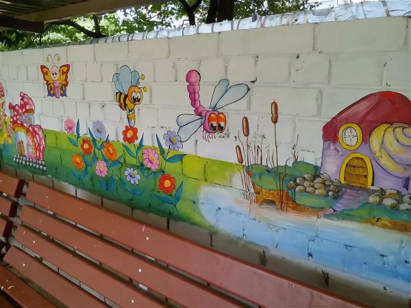 Роспись стен веранды в детском саду