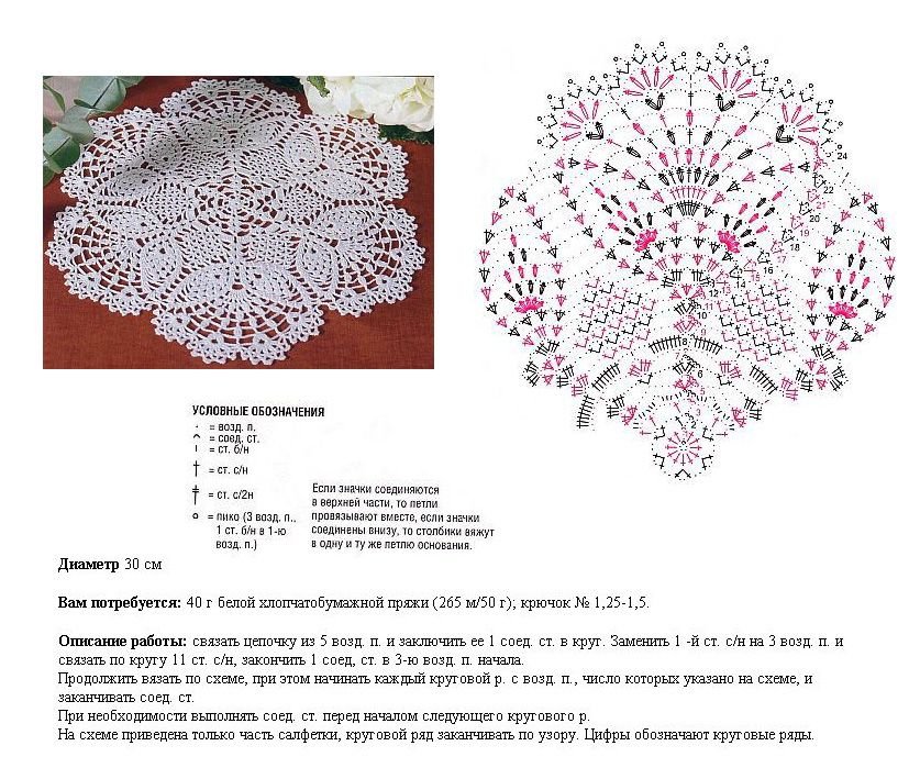 ![Схемы вязания салфеток крючком с подробным описанием]()