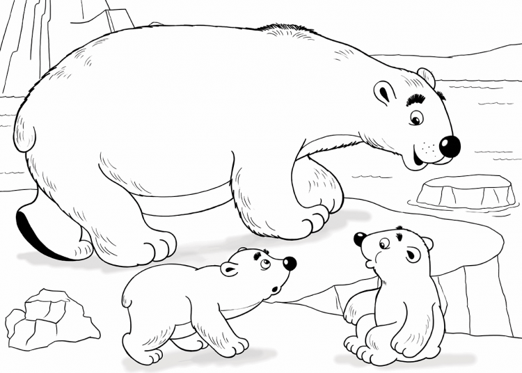 Арктика белый медведь раскраска для детей